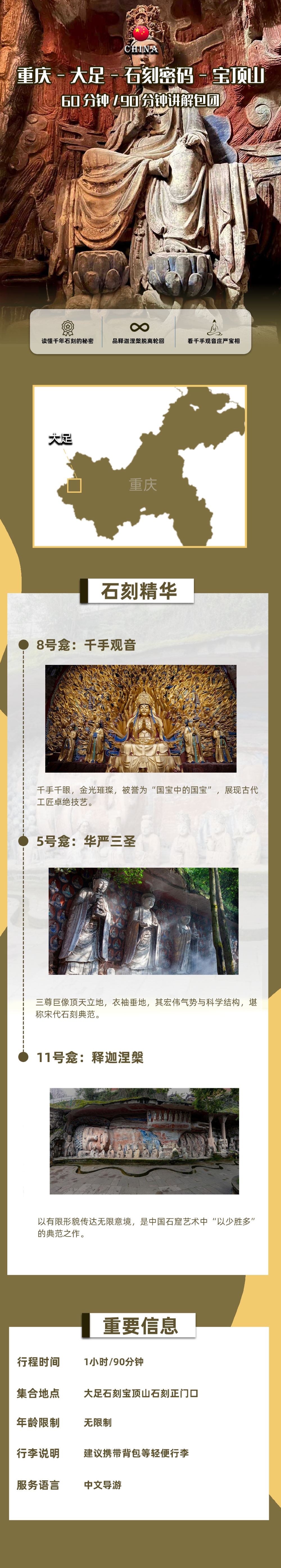 重庆大足石刻宝顶山中文人工讲解60/90分钟可选(不含票)【跟着导游一起读懂千年石刻的秘密】
