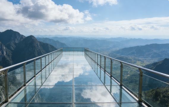 ▲ 云天玻霸,位于清远市清新区古龙峡景区,是一个以玻璃观光组合为核心的景点。它包含悬空玻璃平台、玻璃吊桥、玻璃栈道等 6 大高空项目,总长 1300 米,悬浮于海拔 530 米的瀑布群之上,获 12 项世界纪录认证