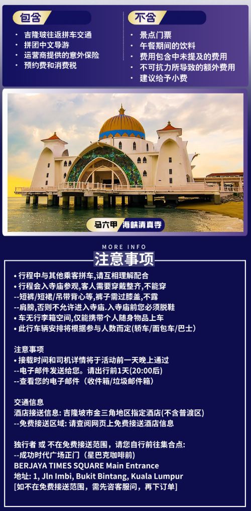 马六甲文化遗产一日游【可选含午餐 吉隆坡出发】【标志性的荷兰广场,惊叹于那些醒目的红色建筑】