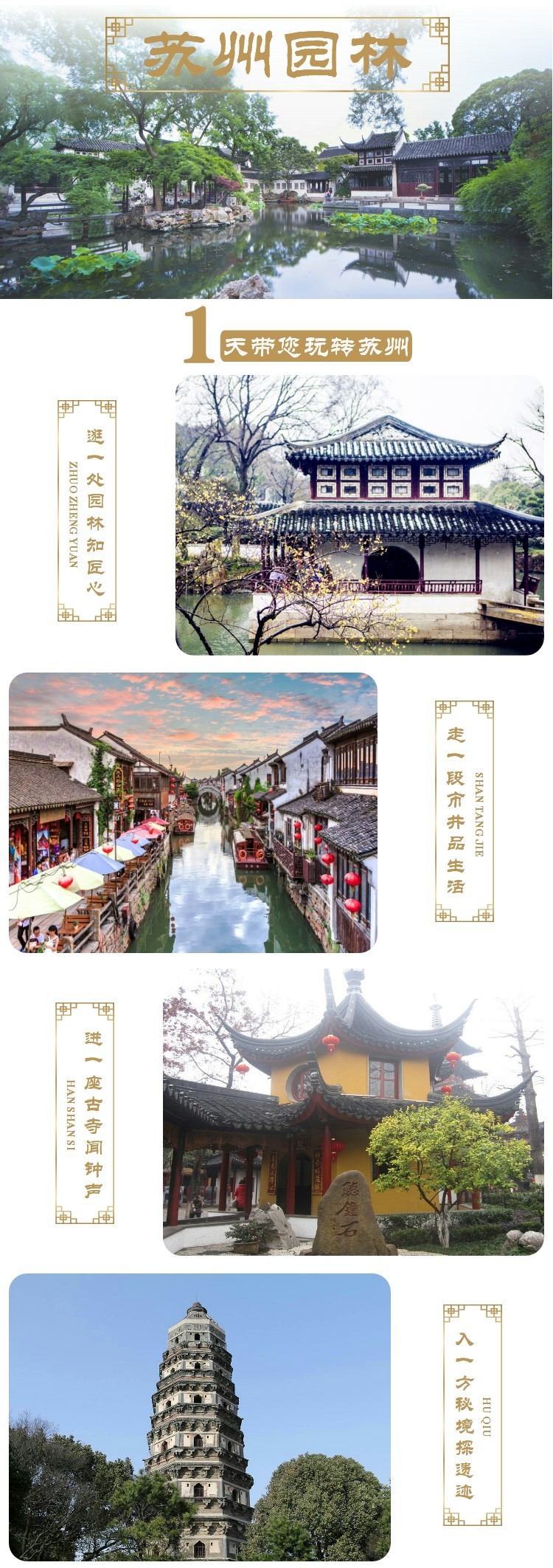苏州拙政园+狮子林+寒山寺+虎丘山风景名胜区+山塘街一日游【含耳麦◆古城上门接◆严选导游◆纯玩保障】
