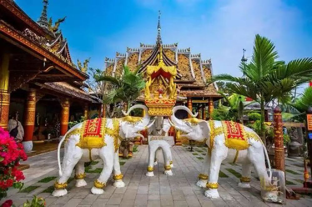 ▲ 参观曼春满古佛寺,每天下午在泼水广场有大型泼水活动,可以亲身体验傣族泼水节的狂欢氛围。