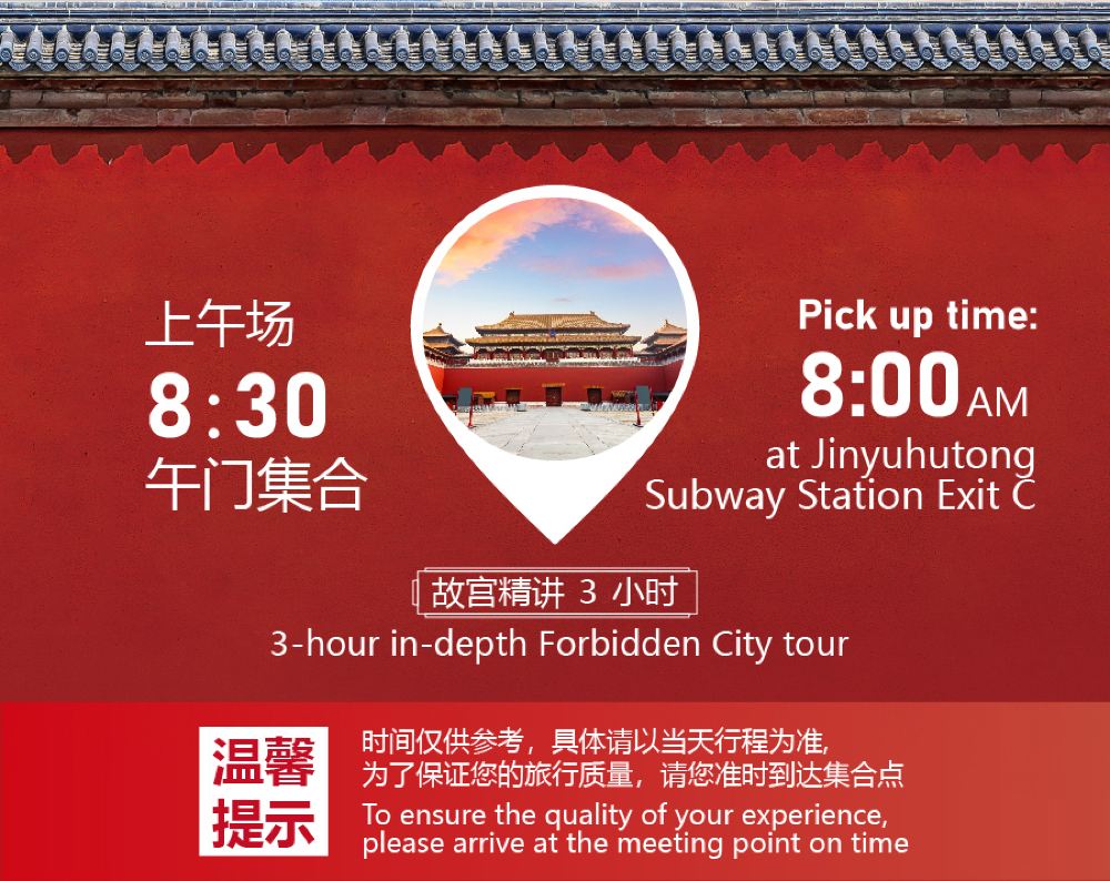 1.故宫在出行日7天前20:00开始售票出票,因故宫限流门票数量有限,我们会优先为您预约上午票,如遇上午票售罄会继续为您抢购下午票,若门票均售罄会第一时间联系您协调变更出行日期或订单全额退款,请您知晓并理解。
