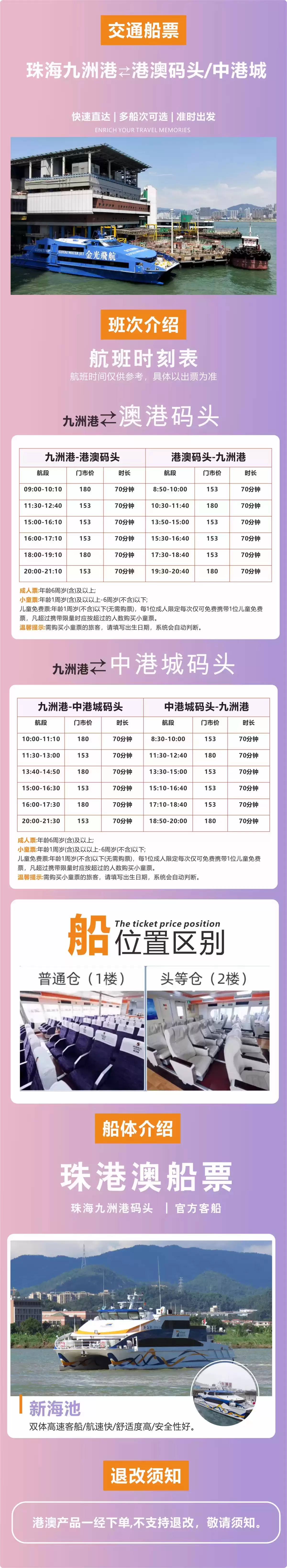 【珠海九洲港-香港尖沙咀/中港城码头】珠海九洲港-香港尖沙咀/中港城码头 单程/往返 船票