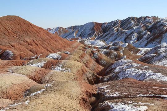▲ 下午:七彩丹霞——大地调色盘的日落华章 午后驱车前往七彩丹霞地质公园,该景观将彻底颠覆你对色彩的认知。乘坐景交车穿梭其间,连绵的山峦如同被巨匠挥洒了胭脂、橙黄、黛青与灰白,在阳光下流淌着斑斓的韵律。日落前抵达观景台,静待一天的高潮。当斜阳为这片磅礴地貌镀上金辉,色彩愈发浓郁鲜活,层次分明的山体宛若燃烧的霞光,壮丽磅礴令人屏息。