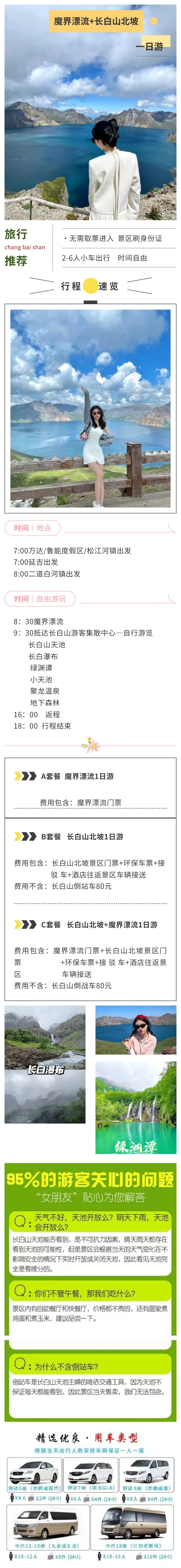 长白山魔界漂流+长白山北坡景区+长白山天池一日游【【2-6人小团 拼车游 上门接送纯玩团,二道白河止】】