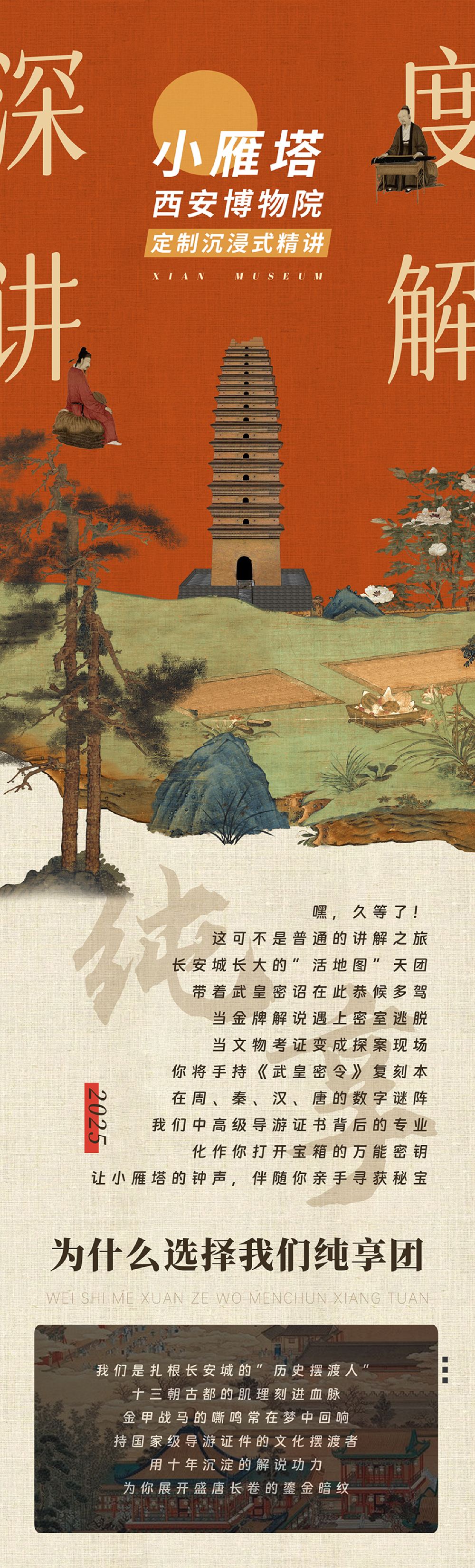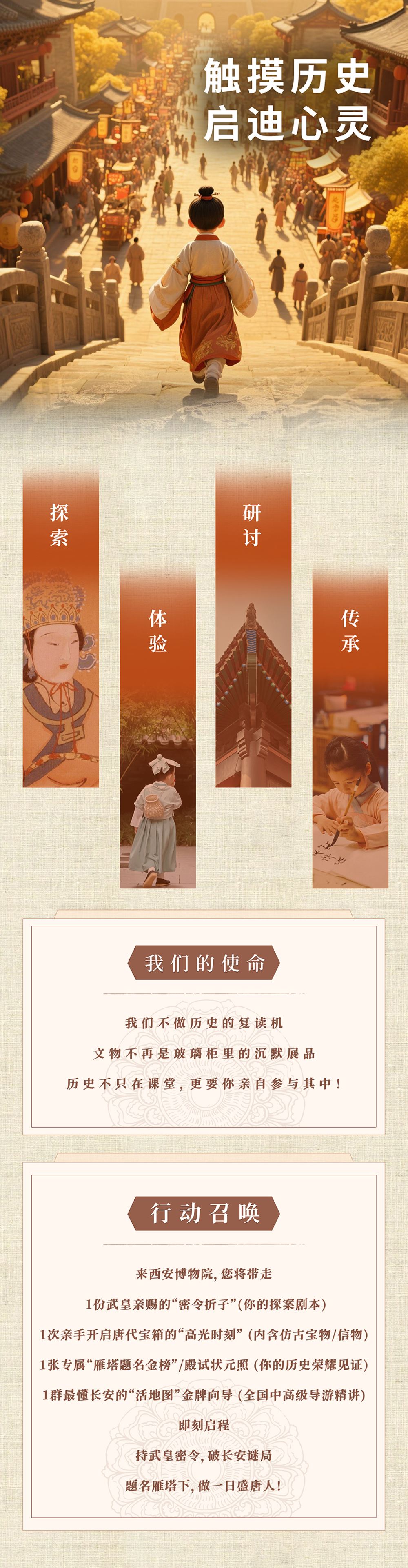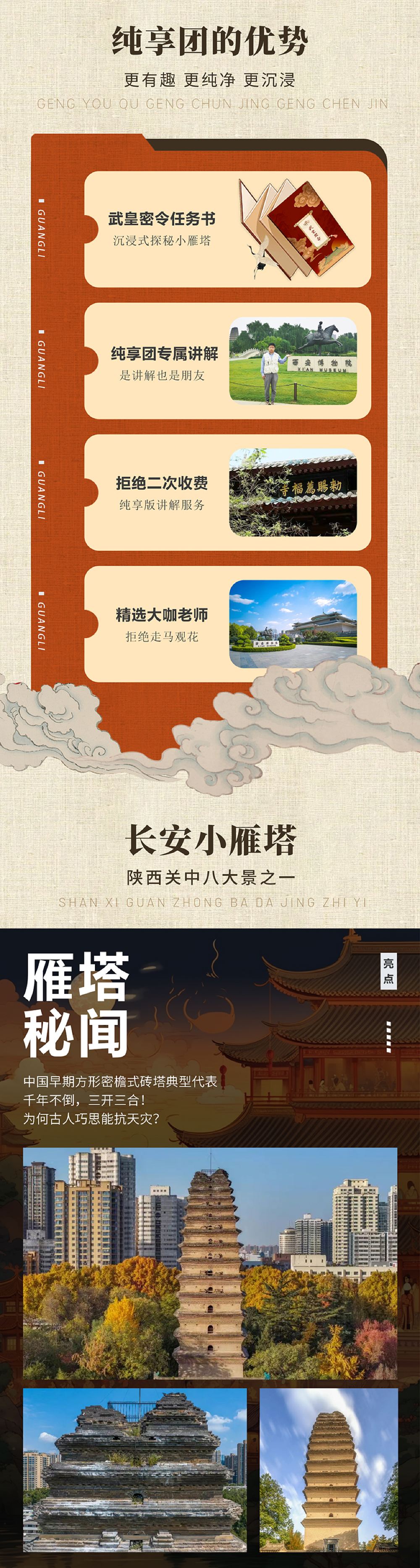 光粒团队针对小雁塔的历史背景进行了二次开发下,解锁了新的旅游玩法,将剧本带入到讲解中,带您感受全新的实景旅游剧本!