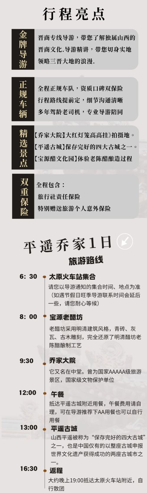 【天天发1人起发含门票】太原站往返平遥古城+乔家大院一日游【[金牌导游]晋商专线导游,带您了解独属山西的晋商文化】