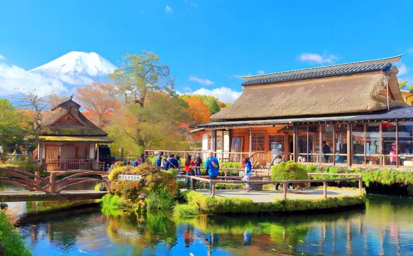 ▲ 【忍野八海】忍野八海是富士山的雪水流经地层过虑而成的八个清泉,日本环境省在 1985 年已将其列为全国优质泉水之一。忍野八海以其优美的自然环境闻名,池水波光潾潾,与美丽的富士山合为一体,美不胜收,吸引无数摄影家不远千里前来取景。传统茅草屋、缓慢转动的水车以及令人惊艳的富士山风景,让人感觉仿佛进入了另一个时代