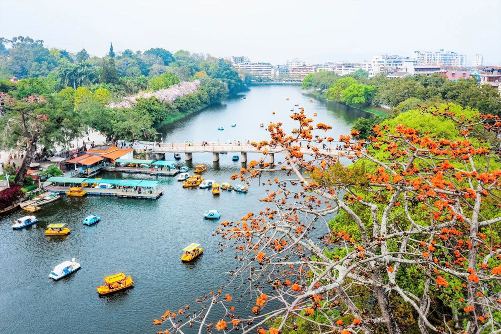 ▲ 潮州西湖 城市中的山水秘境!湖水碧波荡漾,九曲桥蜿蜒如龙。亭台楼阁点缀其间,倒影成画。春日繁花似锦,夏日荷香四溢,是市民休闲的乐园。泛舟湖上,或漫步林荫,感受岭南园林的精致与闲适