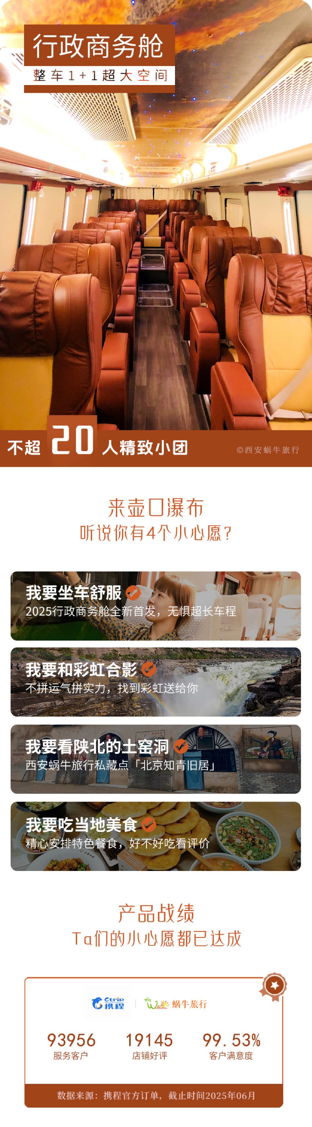 陕西黄河壶口瀑布一日游【可选20人团行政商务舱·专车接早】【[高端座驾]2025全新行政商务舱1+1坐席20人团,超大空间,无惧远途车程!】