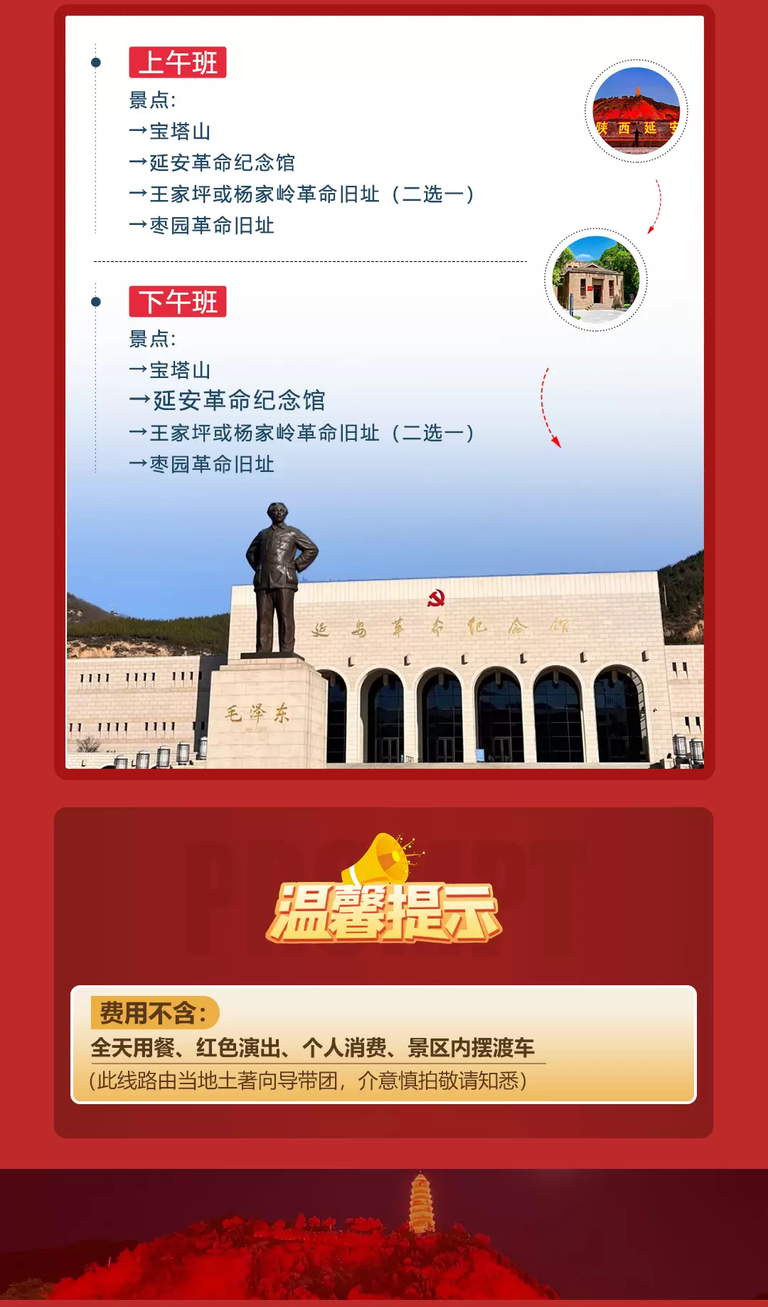 延安宝塔山+延安革命纪念馆+杨家岭革命旧址+枣园革命旧址一日游【市内酒店上门接驾】