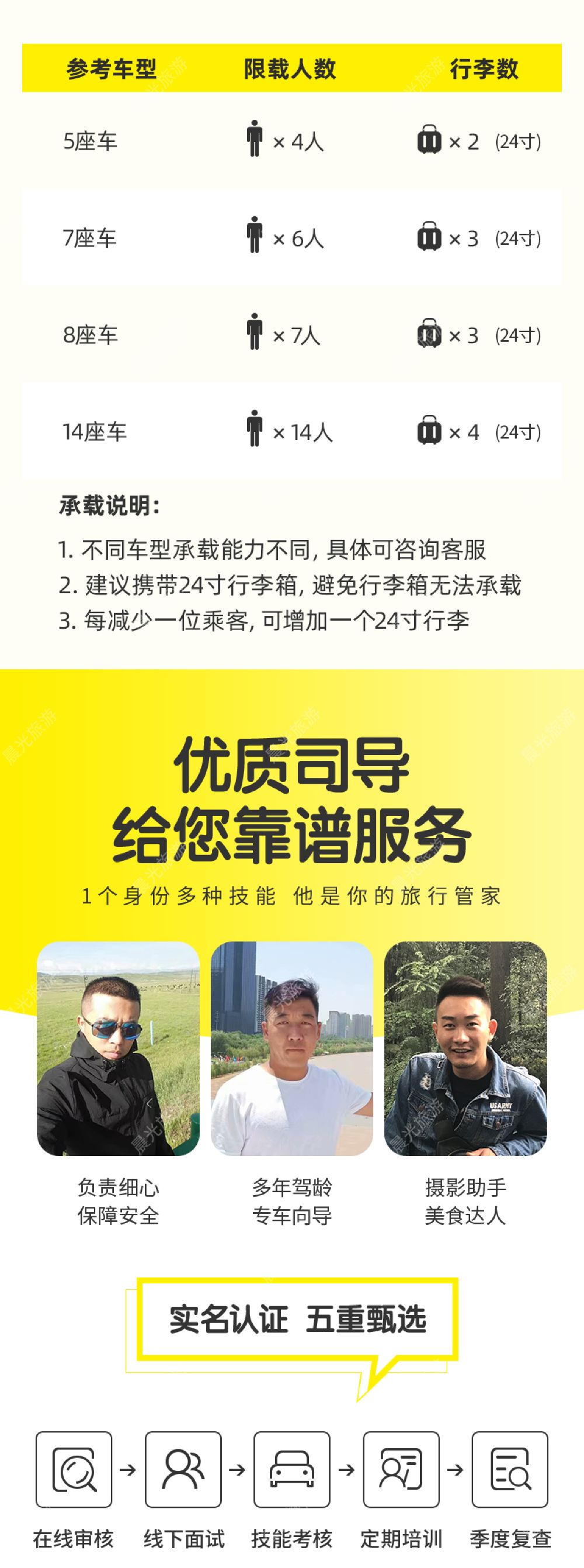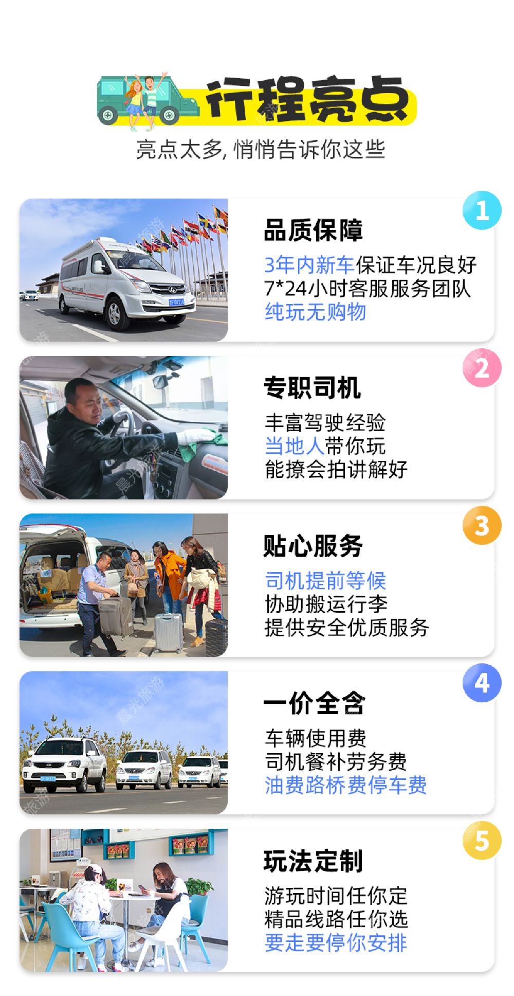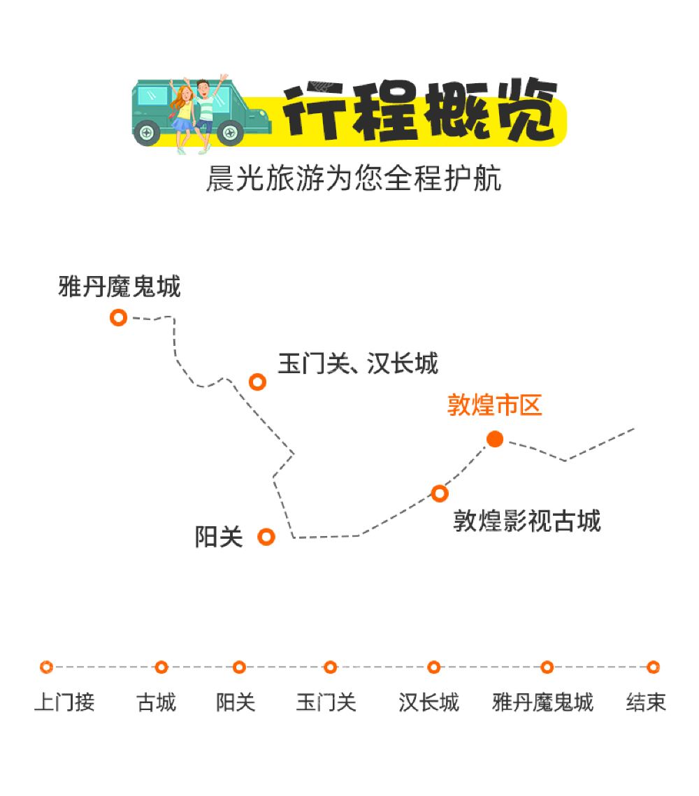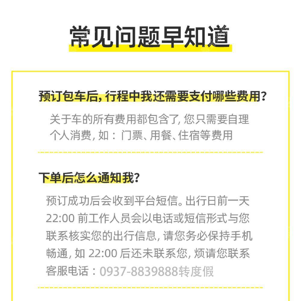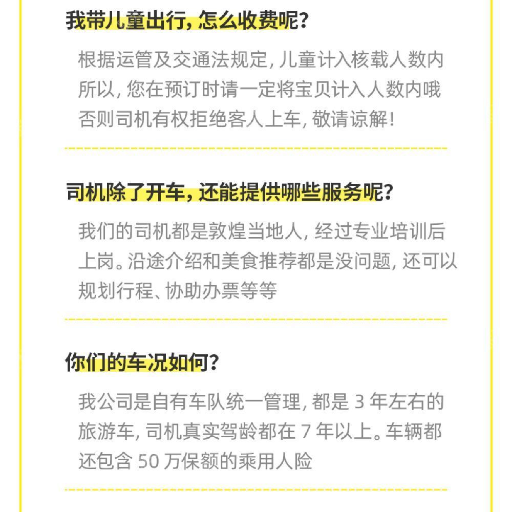 3、敦煌西线包车,如需回程途中看日落,因用车时间超10小时,需补费用:5座100元、7座200