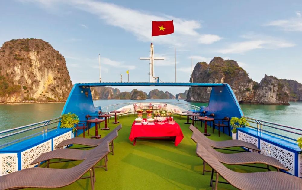 ▲ 在河内老城区 不在接送范围请前往河内大剧院出发 抵达码头登船 中途休息20分钟办理登船手续,登上游轮开始游览活动~ 游览海上景观 游轮经过下龙湾各种千奇白怪的怪石等各种各种成千上 万的海上峰峦巨石,非常震撼人心! 海鲜午餐 在游轮上享用美味。的海鲜午餐一边看向海上的美景^ 惊讶洞 探索数经百万年形成的多彩多样的巨型钟乳石洞^ 神秘洞 皮划艇乘坐皮划艇或竹船,体验钻海上神秘洞 天堂岛 可以在沙滩享受日光浴/游泳或攀登山顶看下龙湾全景 下午茶 在太阳甲板上喝下午茶,享受日落 邮轮返回