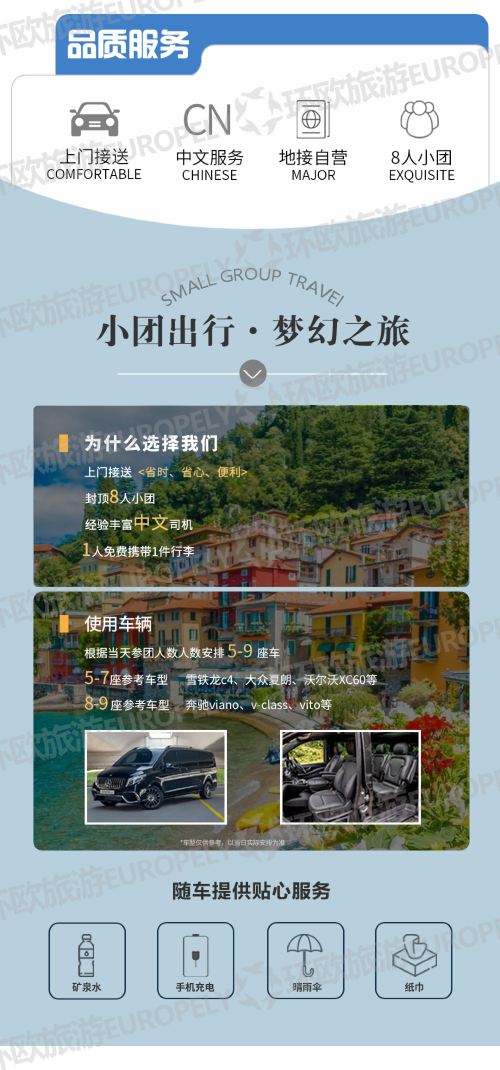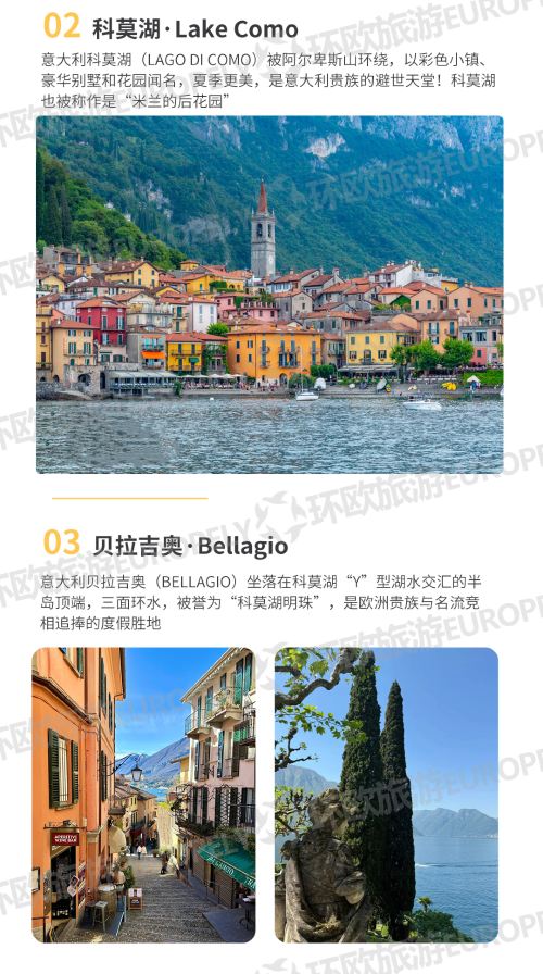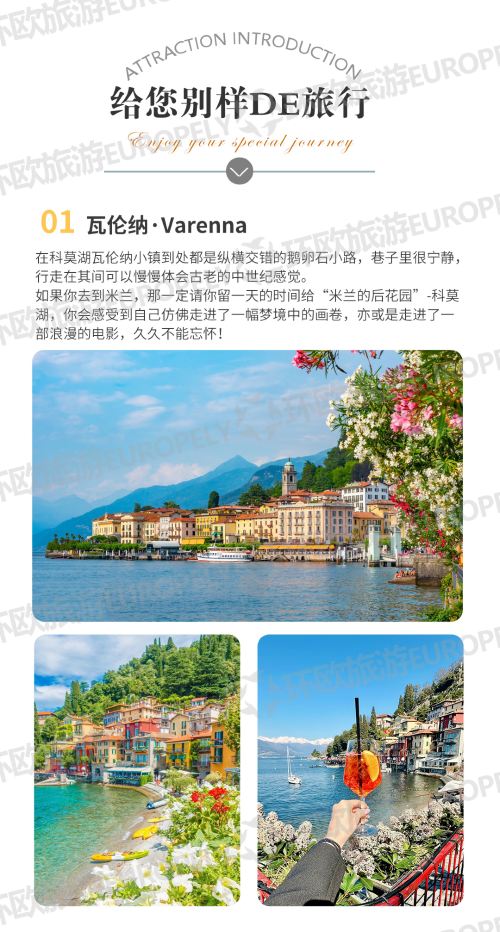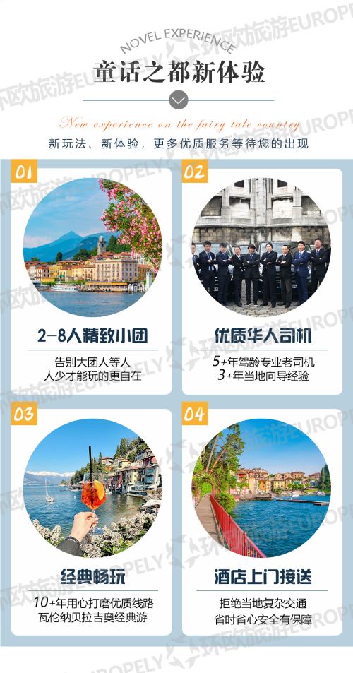 意大利科莫湖瓦伦纳贝拉吉奥一日游8人小团米兰酒店接送中文司机【意大利小镇湖光山色风光】