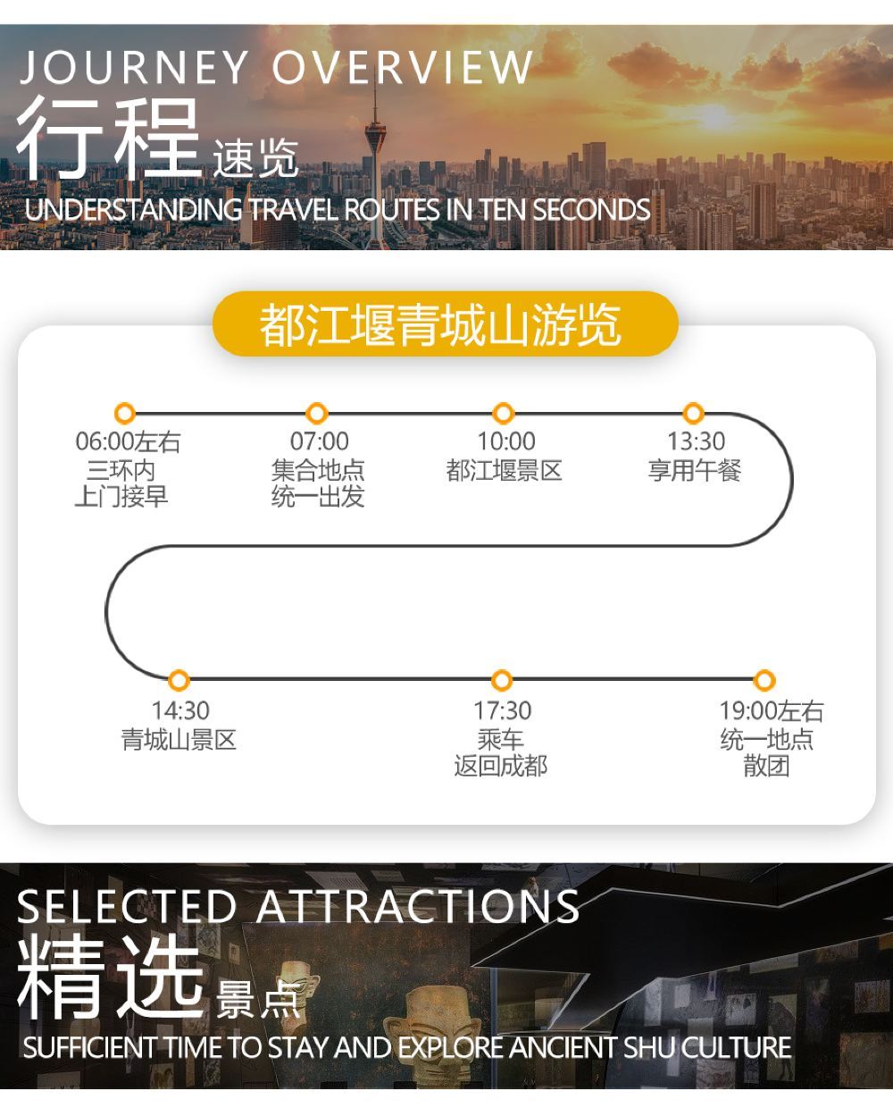 都江堰景区+青城山一日游〓纯玩团,三环内包接,B线升级保姆车【【优选行程】纯玩线路,畅游2大5A级景区:“水利工程”都江堰,“道教圣地”青城山】