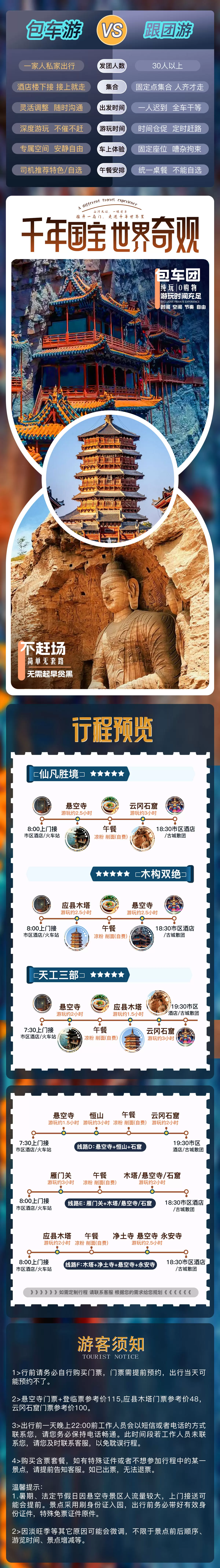 大同云冈石窟·应县木塔·悬空寺·恒山●景区不限时/包车一日游【★包车一单一车★纯玩0购物★市区酒店上门接★】