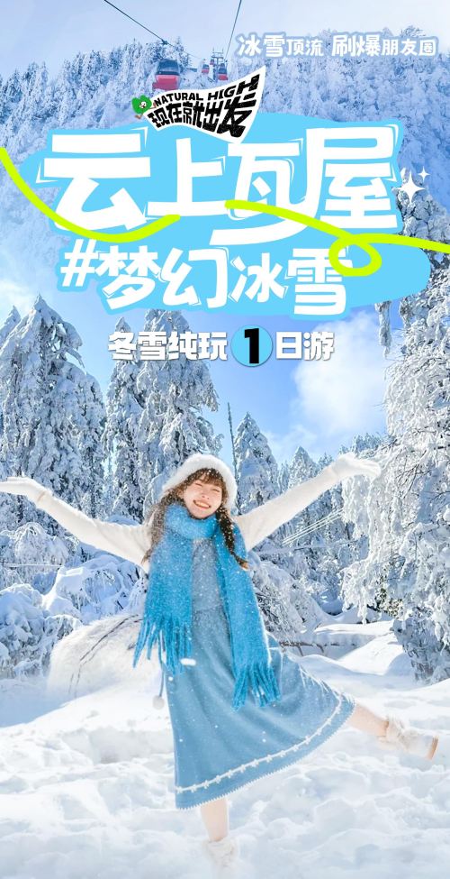 ●从游客中心出发,乘坐金花桥索道、古佛坪索道后到达云顶之巅,一路赏雪松雾凇、观贡嘎雪山。