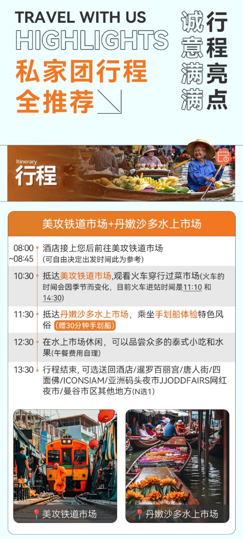【曼谷包车游】丹嫩沙多水上市场/美功铁道市场/可选大皇宫含票【多条线路可选】