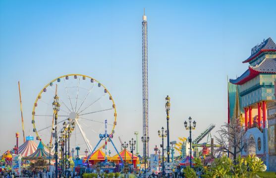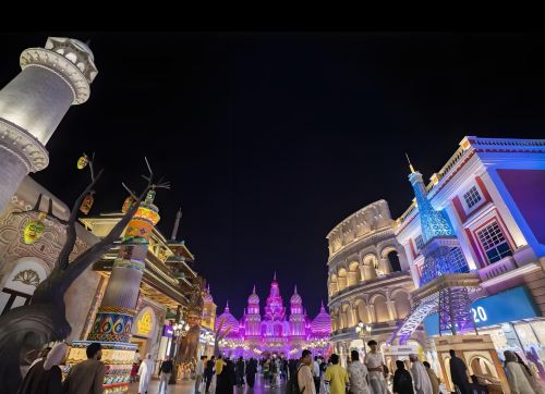 ▲ 迪拜地球村:季节性文化游乐胜地,每年10月至次年4月开放。这里有27个国家展馆,复刻各国建筑与文化