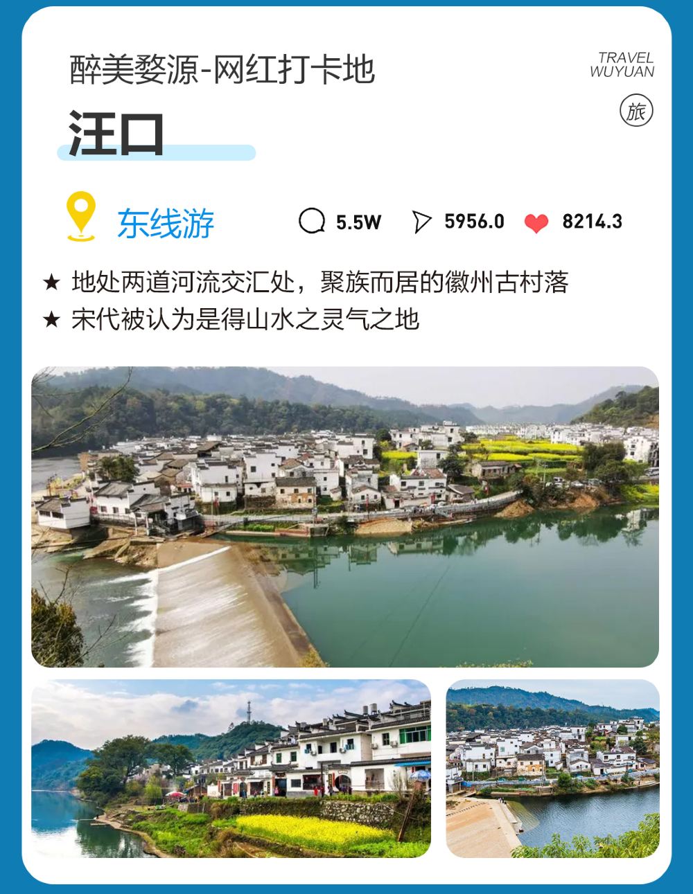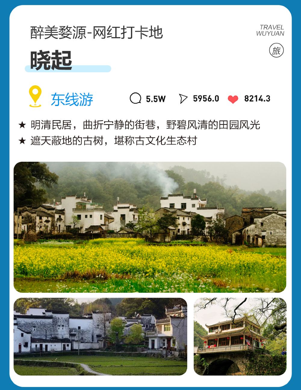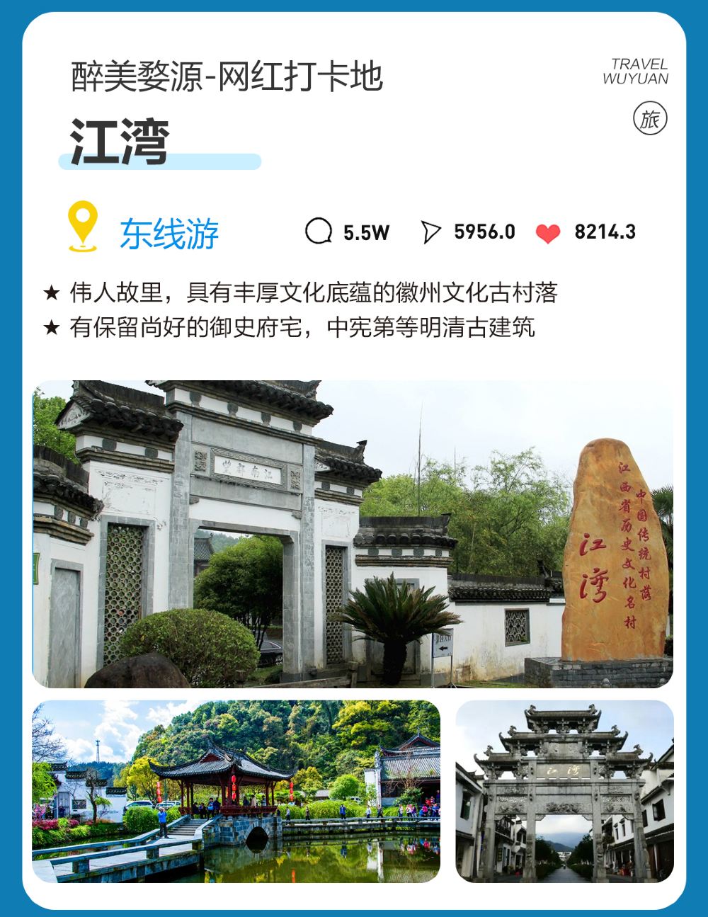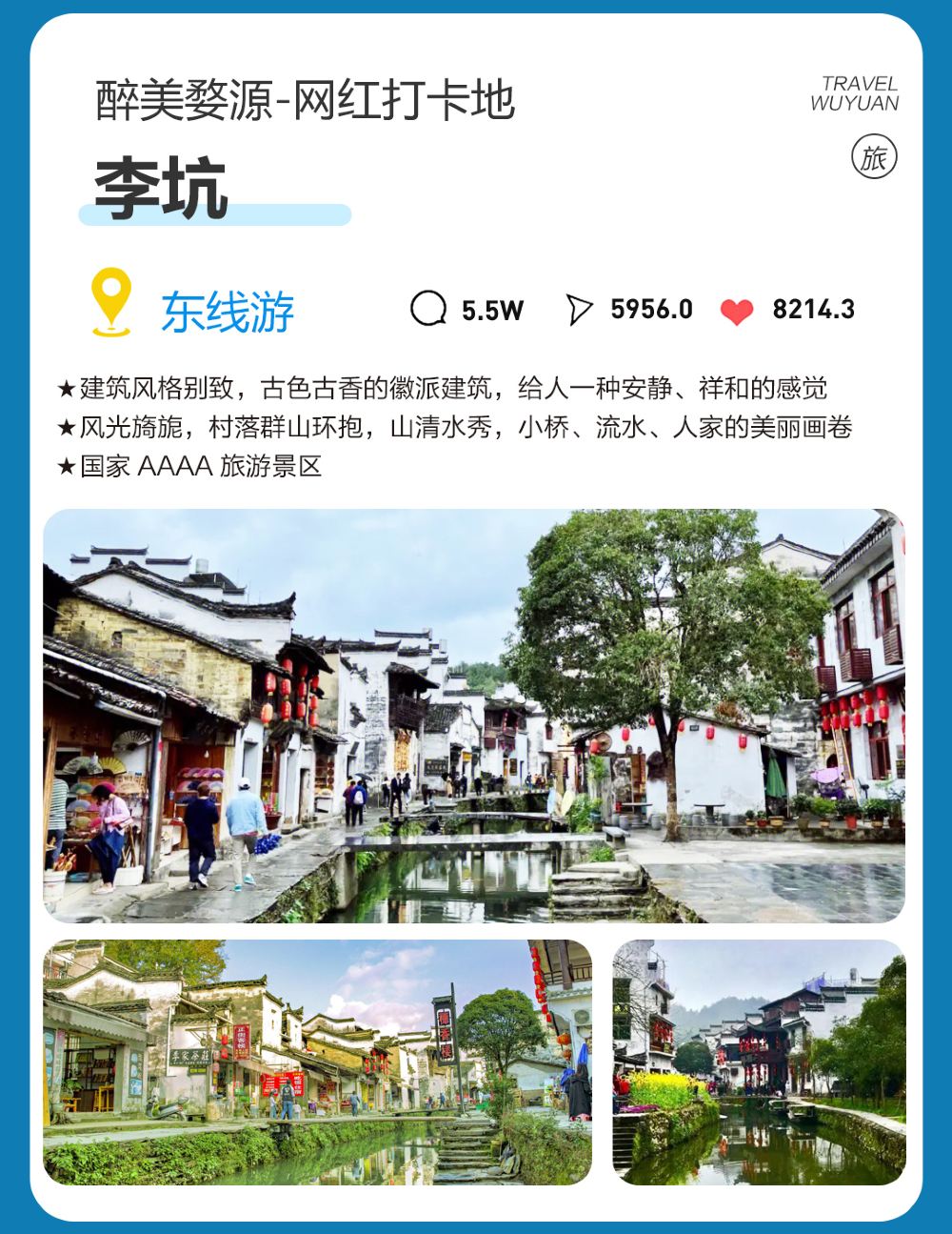 【东线】一日游为 江湾 李坑 汪口 晓起或者江岭(花季)四个景点