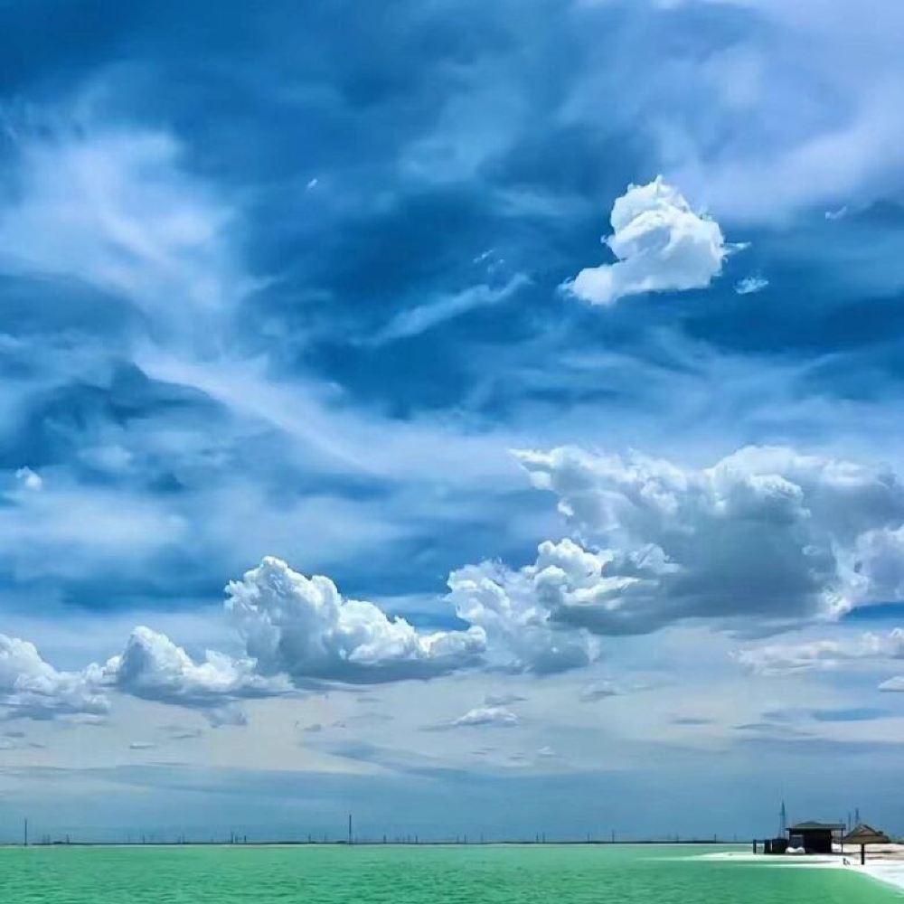 ▲ 察尔汗盐湖位于青海海西蒙古族藏族自治州格尔木市,世界第二大盐湖,面积达 5856 平方千米1。这里盐湖风光,碧绿湖水与洁白盐滩相互映衬,盐花形态各异,似珊瑚、亭台楼阁,巧夺天工1。还有长达 32 公里的万丈盐桥,公路铁路并行其上。