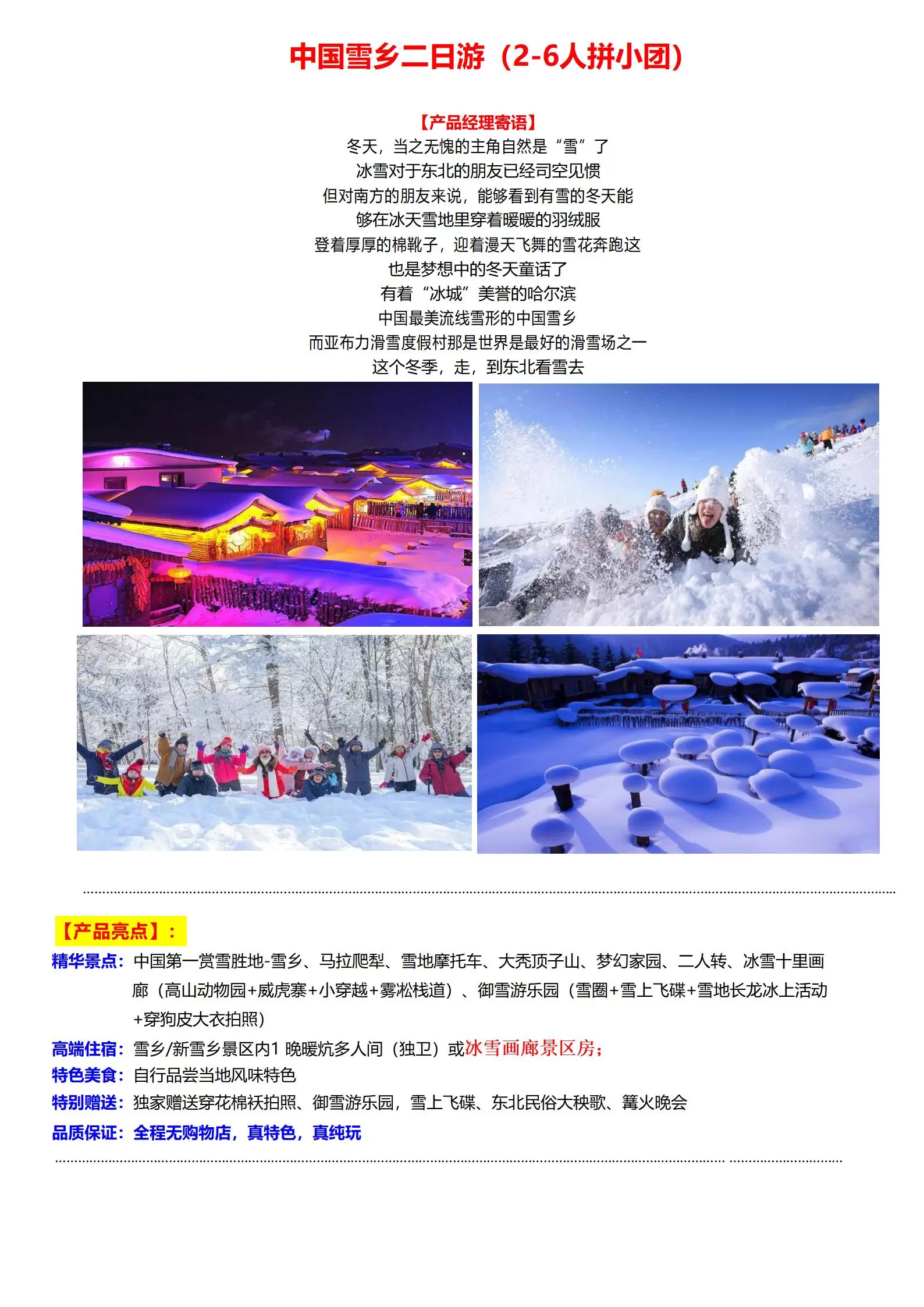 6人拼小团丨中国雪乡+雪地摩托车+马拉爬犁纯玩2日【一价全含0自费0购物!二环内酒店上门接送】