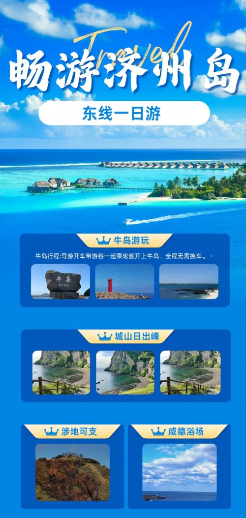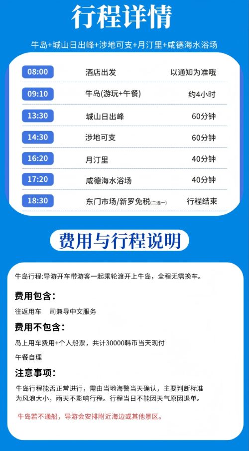 韩国济州岛东线精品一日游 牛岛+城山涉地+月汀里+咸德【济州岛东线牛岛+城山日出峰+涉地可支+月汀里+咸德海水浴场】