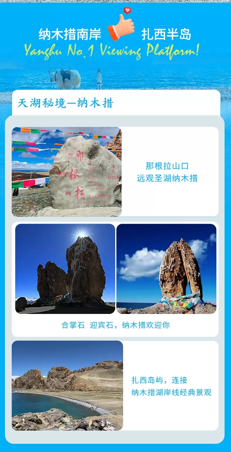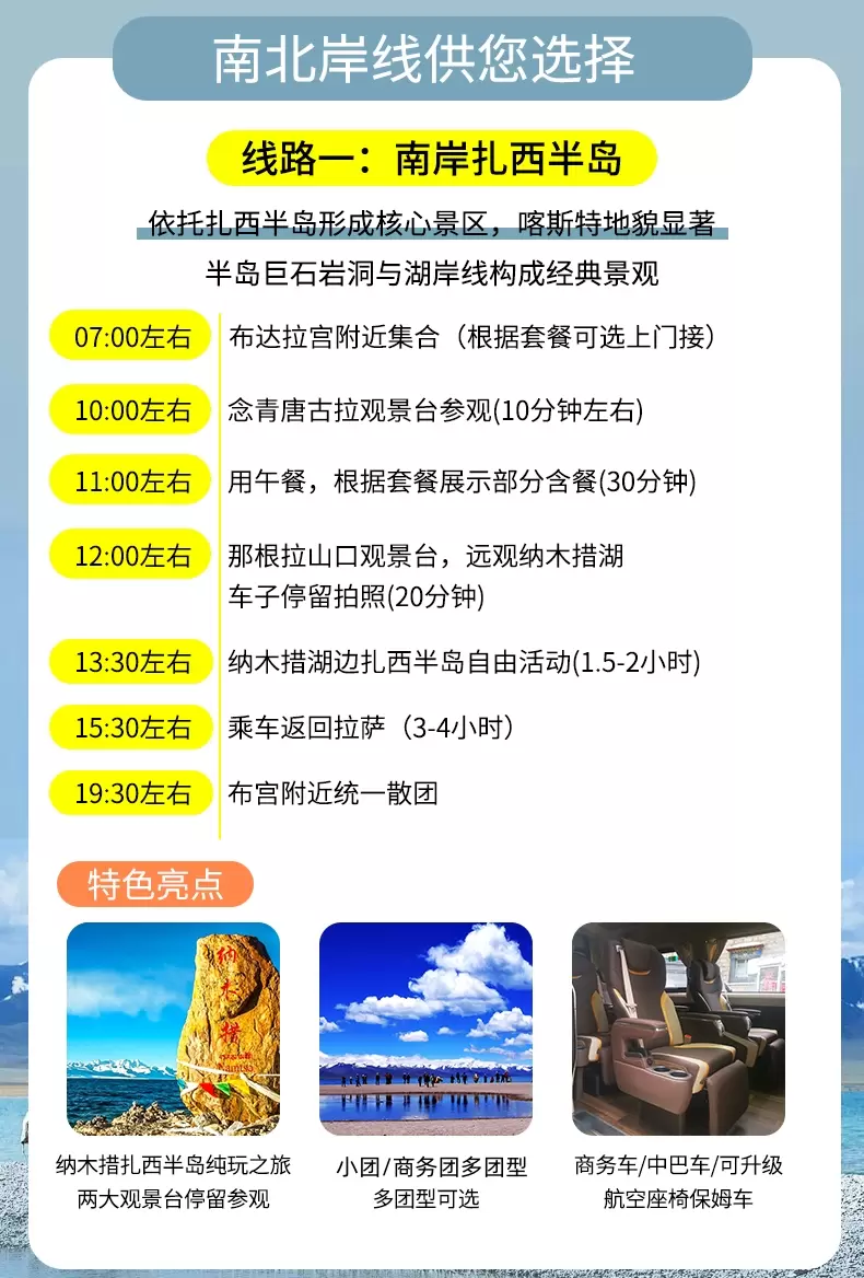 拉萨纳木措景区一日游【南岸扎西岛北岸圣象天门线路可选套餐丨商务含接团/小团/航空座椅车载制氧团丨可选】