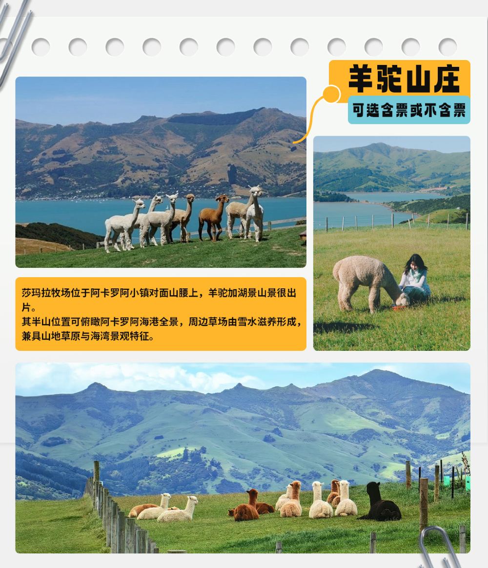 新西兰南岛阿卡罗阿+羊驼农庄一日游【基督城往返丨可选含票】【特色小团体验:告别大团嘈杂等待,赏景拍照有空间,司导兼顾需求,互动更深入。】