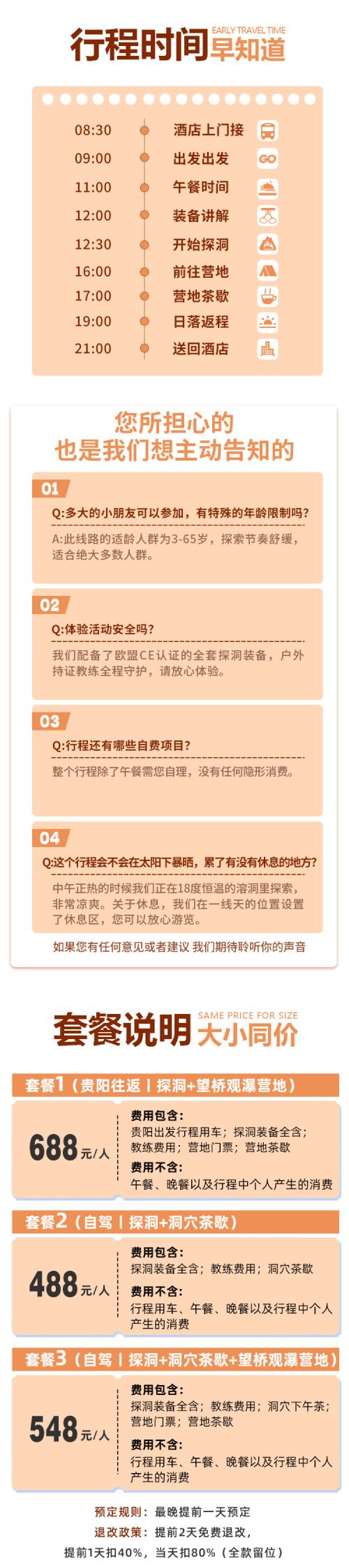1.户外探洞活动不同于传统旅游,具有一定的危险性,要求参与者身体健康、无重大疾病史、非孕妇、无传染性疾病等,因此参加者须对自己的安全负责,对自身情况和活动要求做好充分评估,并充分告知客服自身身体状况,查看风险告知书 ,签署免责声明;