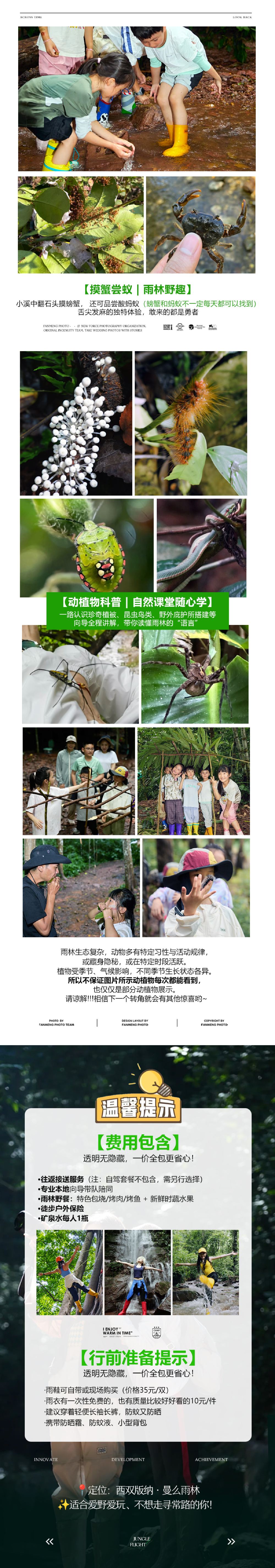 1、雨林徒步出行年龄建议在3-65岁人群,且无任何不适宜户外徒步的疾病史(如高血压,心脏病等),3个月内做过大型手术者、孕妇禁止参加!!60岁-65岁需参加需保证老人身体健康,签署免责协议书,无不适宜参加户外活动的病史,65岁和以上禁止参加