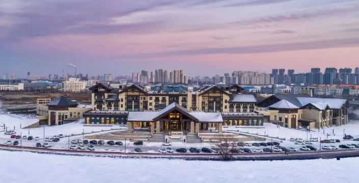 ▲ 温泉度假村外观,冬季被白雪包围,欧式小镇风格结合东北雪景,泡完汤披着浴袍出门看雪,一天的疲惫瞬间融化。