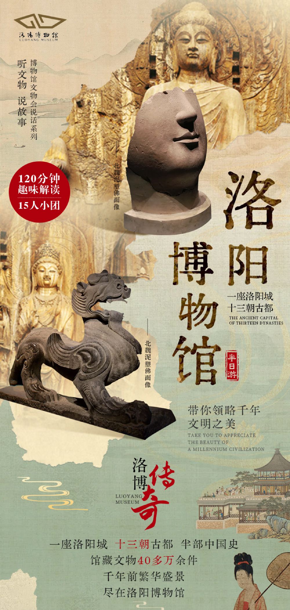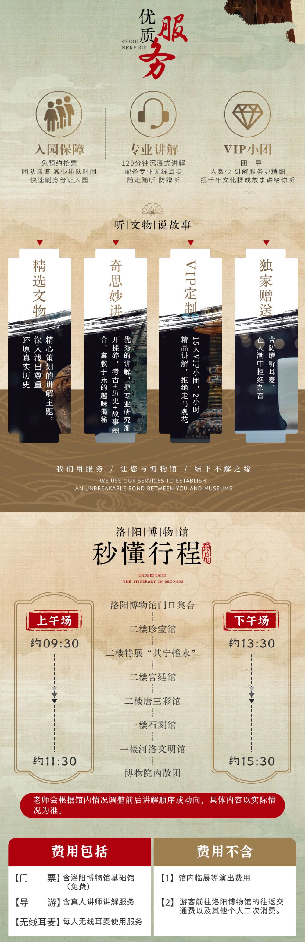 【公告通知】洛阳博物馆免门票,不收门票费用。此产品由旅行社提供的洛阳博物馆讲解产品,包含旅行社导游讲解服务、提供无线耳麦和预约服务;门票为旅行社预约团队票或官方公众号预约票,介意者勿拍!