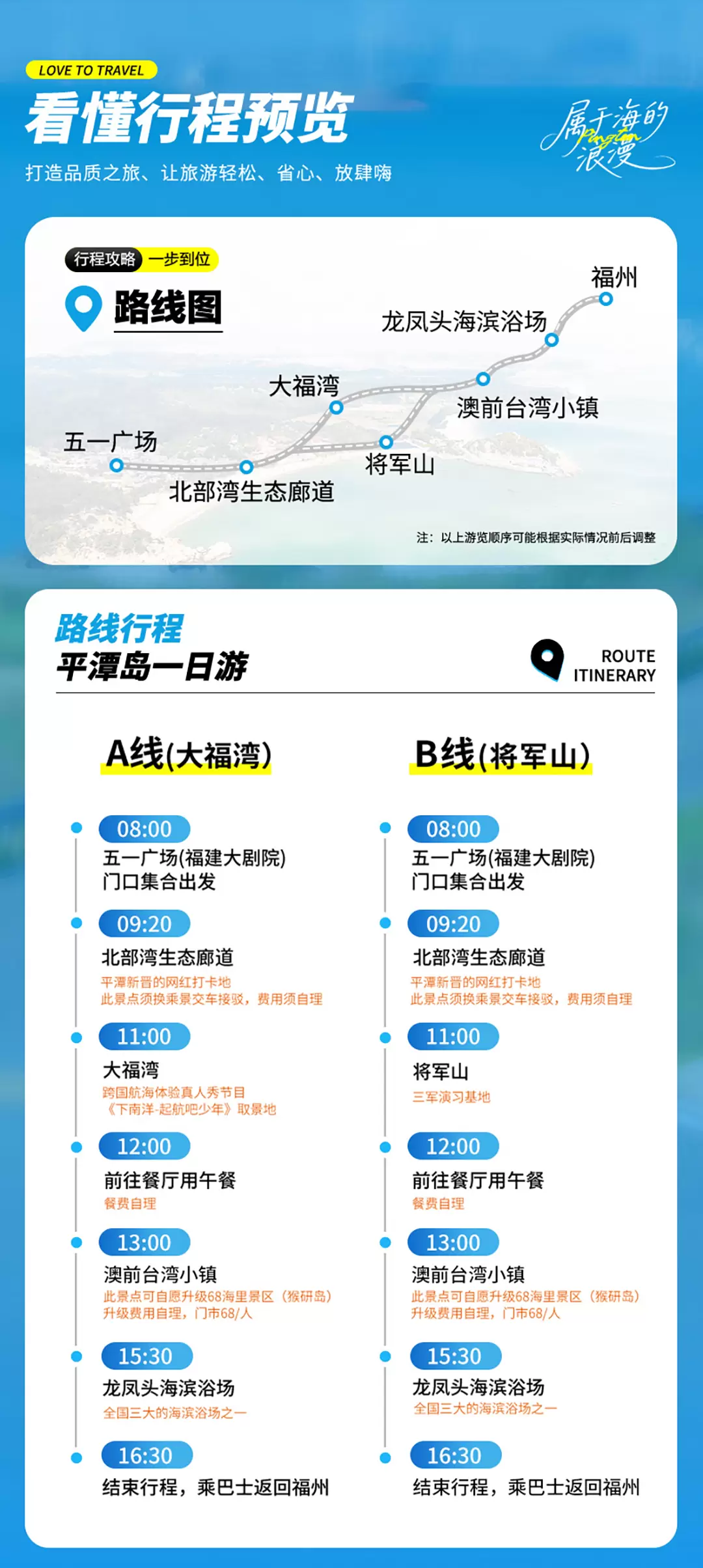 福州平潭岛+龙凤头海滨浴场+海坛古城一日游【纯玩无购物|大福湾/将军山热门线|可升猴研岛|可选独团行程更自由】