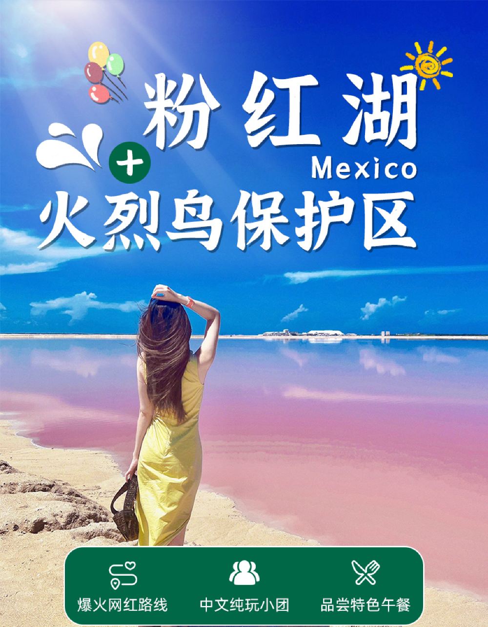 墨西哥坎昆粉红湖一日游【网红粉红湖+火烈鸟一日游】【网红路线 中文司导 纯玩小团】