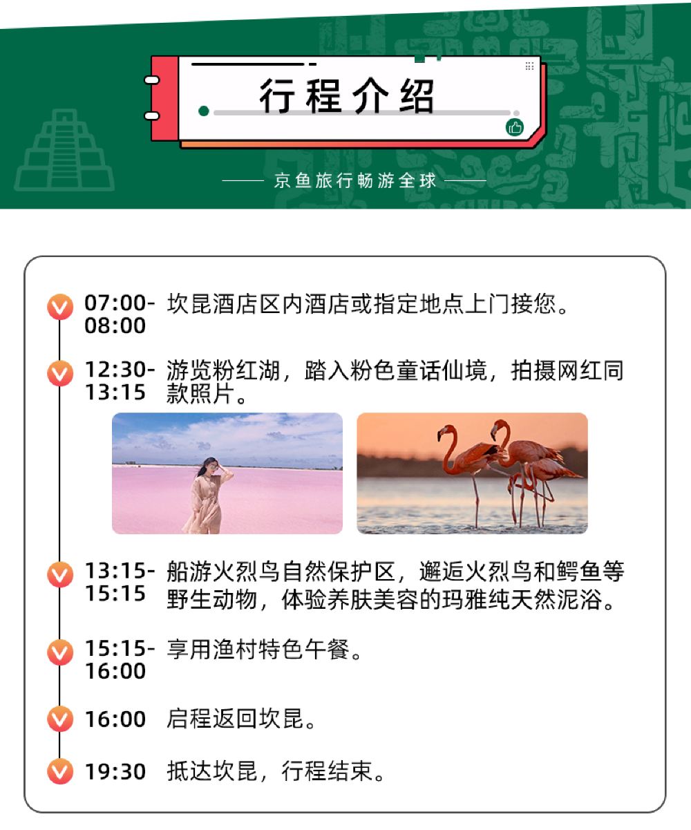 粉红湖+火烈鸟一日游:坎昆酒店区域酒店接送,精品中文小团