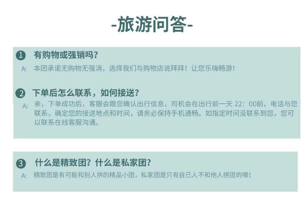 2.全程无购物,纯玩团,行程中游任何问题可与司兼导沟通处理,您的满意是我们的目标!