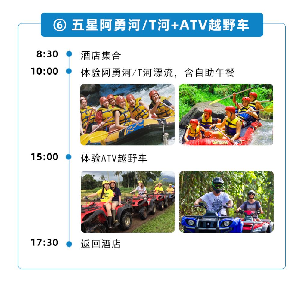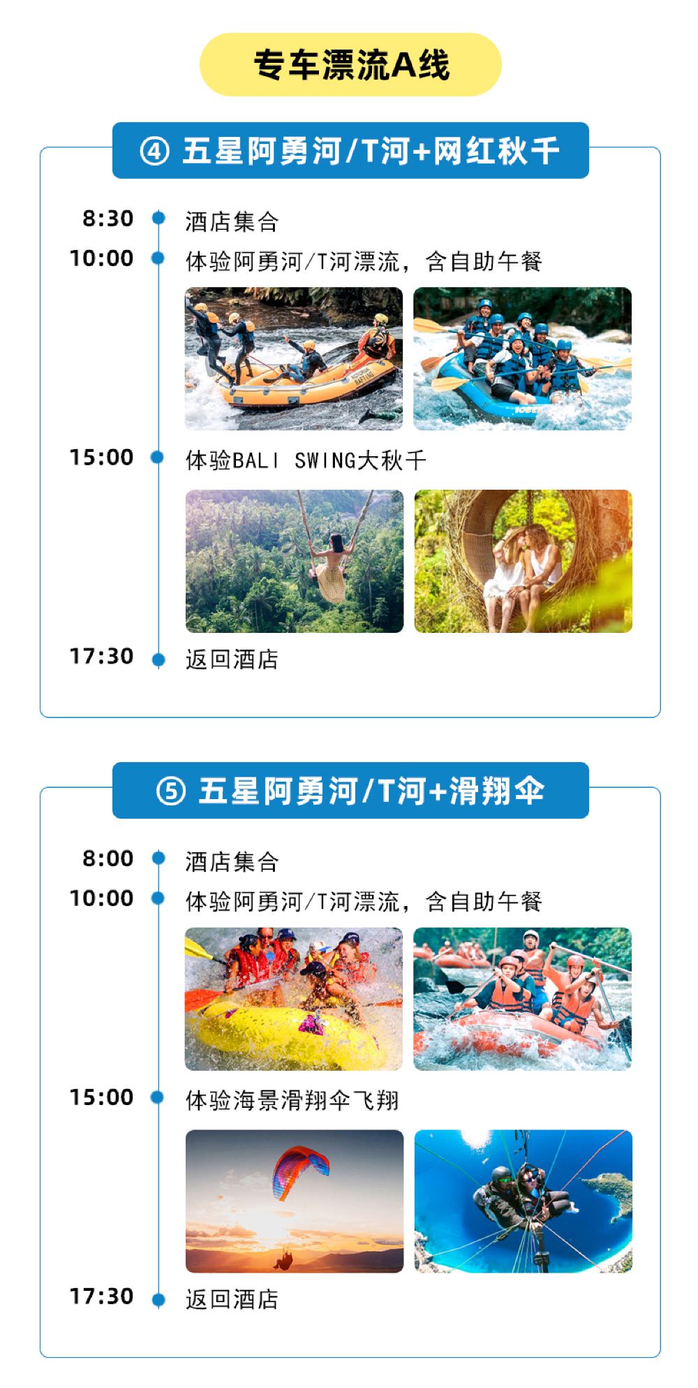 巴厘岛阿勇河漂流一日游【网红秋千/SPA /含接送可选】【丛林漂流 全程阿勇河漂流 T河漂流 休闲spa 体验热带雨林原始森林漂流】