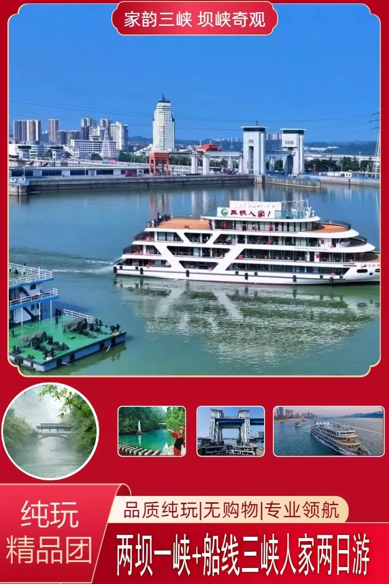 【酒店套餐】多人群可选丨宜昌舒适型酒店住宿1间+两坝一峡+船线三峡人家两日游