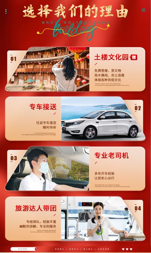 2、本产品按实际人数安排合适车型,并根据先到先上车原则,不预留位置,不接受指定座位,在不影响您行程的情况下,可能会南靖土楼和永定土楼共用车辆,交通过程中需要更换车辆,敬请谅解~