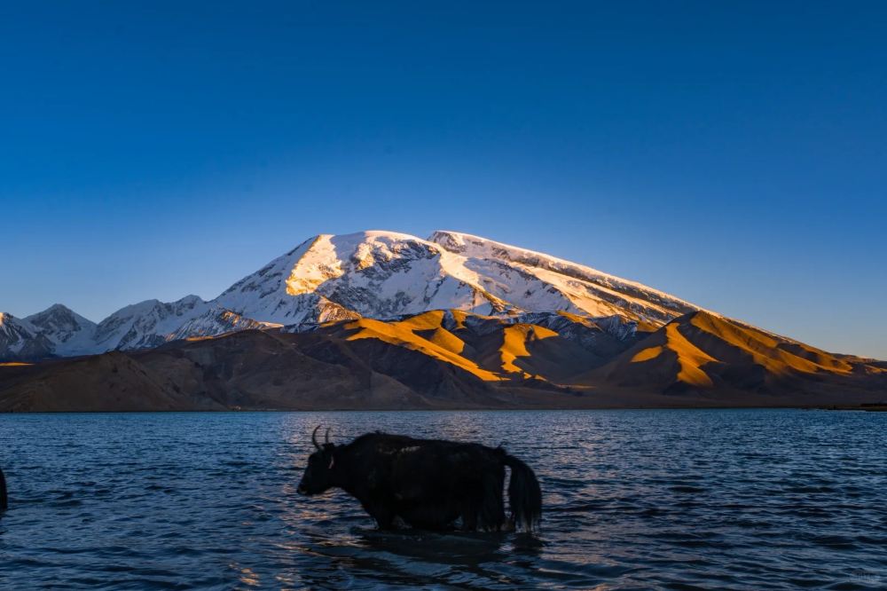 ▲ 喀拉库勒湖 被誉为慕士塔格峰下的蓝宝石, 南疆帕米尔高原上的一颗璀璨明珠。 湖边漫步,呼吸自由的空气,所有的不痛快都烟消云散。 湖水与雪山交相辉映,喀拉库勒湖,一幅动人心魄的画面。