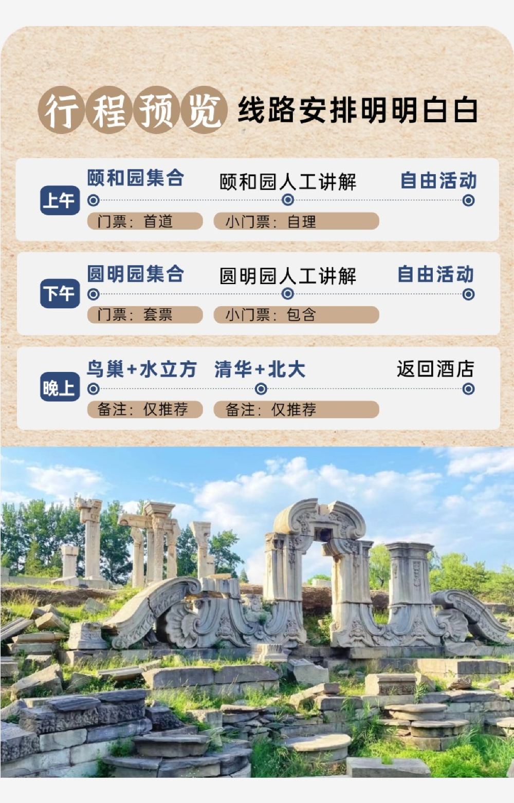 纯玩团 北京颐和园+圆明园+北京一日活动【人工讲解+可选包团】【10年+资深导游人工讲解、35人左右的精品小团 | 可选一家一团独立包团一日游线路】