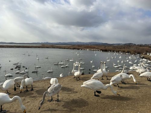 ▲ 每年冬天,成群的天鹅如约而至,荣成天鹅湖便成了一 片梦幻的童话世界。冬日的阳光洒在天鹅洁白的羽毛 上,优雅的身影划过水面,像一幅正在流动的水彩画。 站在湖边,听天鹅低鸣,与湖水拍岸的声音交织在一 起,仿佛是冬天专属的协奏曲。