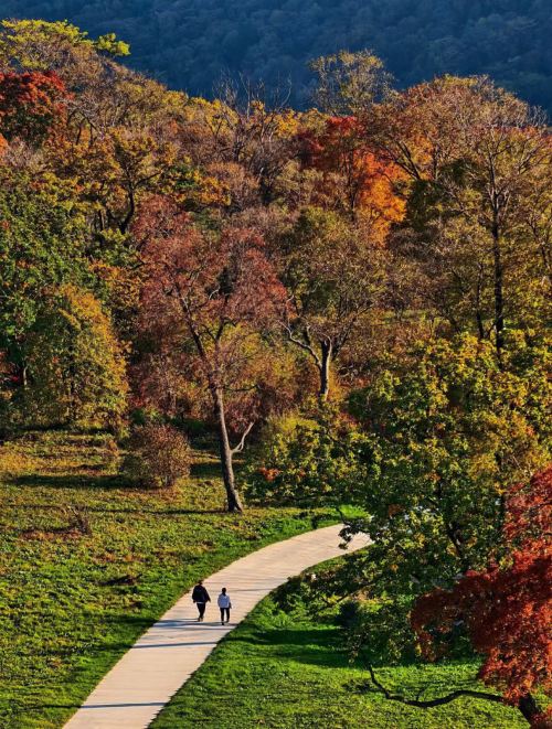 ▲ 刚进景区时还觉得平平无奇,直到坐摆渡车到枫台,沿着栈道往山顶云台爬,才懂什么叫渐入佳境。沿途全是造型奇特的古树,越往上走,秋色越浓烈,丹红叠着金橙,明黄渗着浅褐,像打翻了调色盘,每一步都像走进浓墨重彩的油画里。