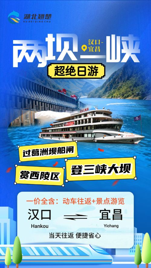 宜昌两坝一峡游船+三峡大坝一日活动【含汉口-宜昌往返动车】【承诺无购物,拒绝鸡肋景点,质量保证用心服务!】