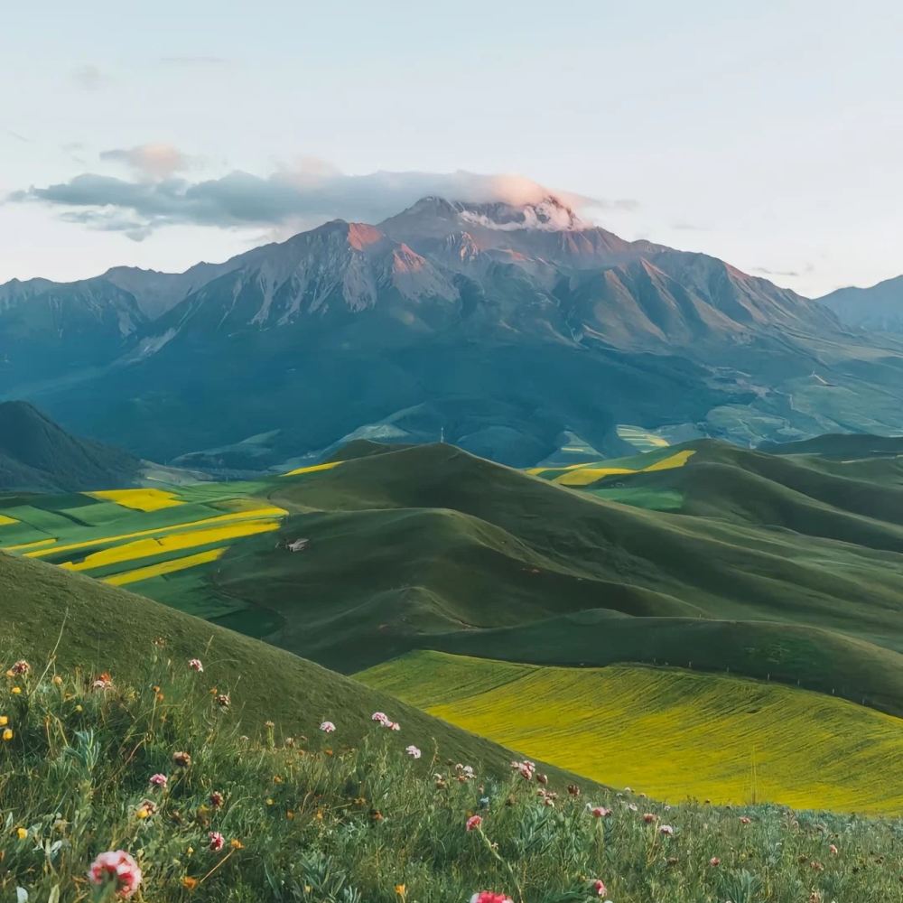 ▲ 祁连山大草原的美,是雪山脚下绿浪翻滚的辽阔碧毯,与云端牧场牛羊成群的盎然生机交织而成的纯净画卷。