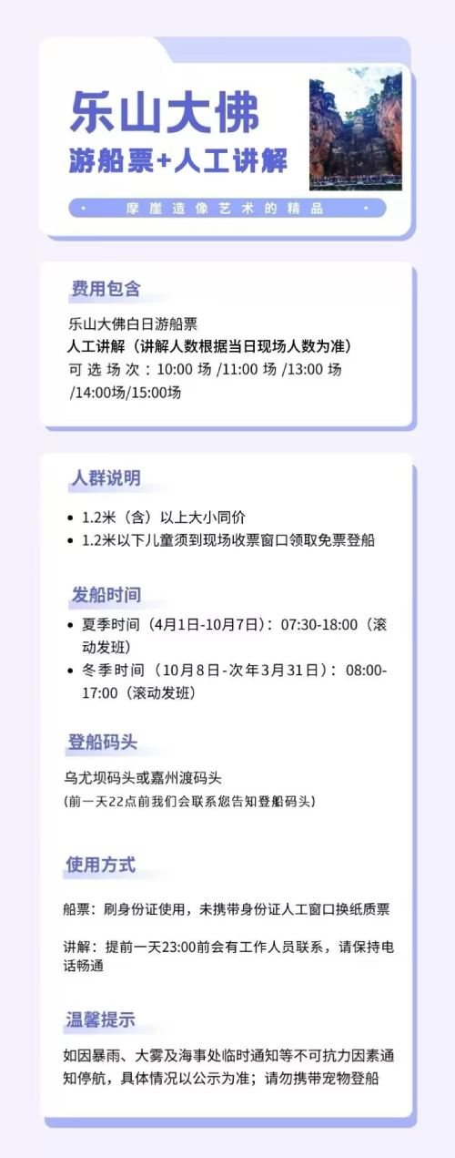 乐山大佛游船票+人工讲解一日游【品质出游】