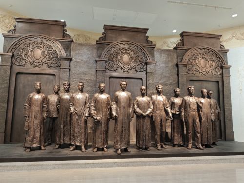 ▲ 1921年,参加中国共产党全国第一次全国代表大会的十三位中共代表雕像。 您能说出他们的名字吗?
