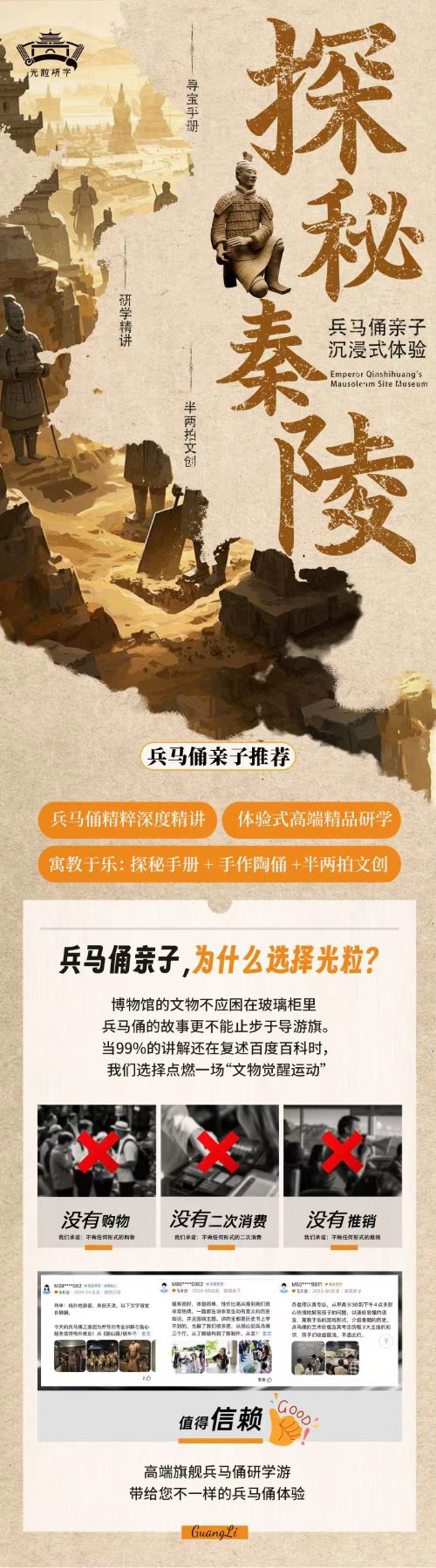 亲子研学·西安兵马俑+丽山园|高级讲解+体验陶俑或AR+文创【[深度体验][历史为骨、文化为翼、考古为脉]的设计课程初心亲子探秘书+互动讲解-半两拍文创+手作陶佣】