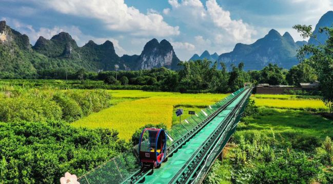桂林冠岩古东瀑布1日游桂海晴岚旅拍体验热气球纯玩【桂林市区大型草坪与山峰旅拍体验游玩】